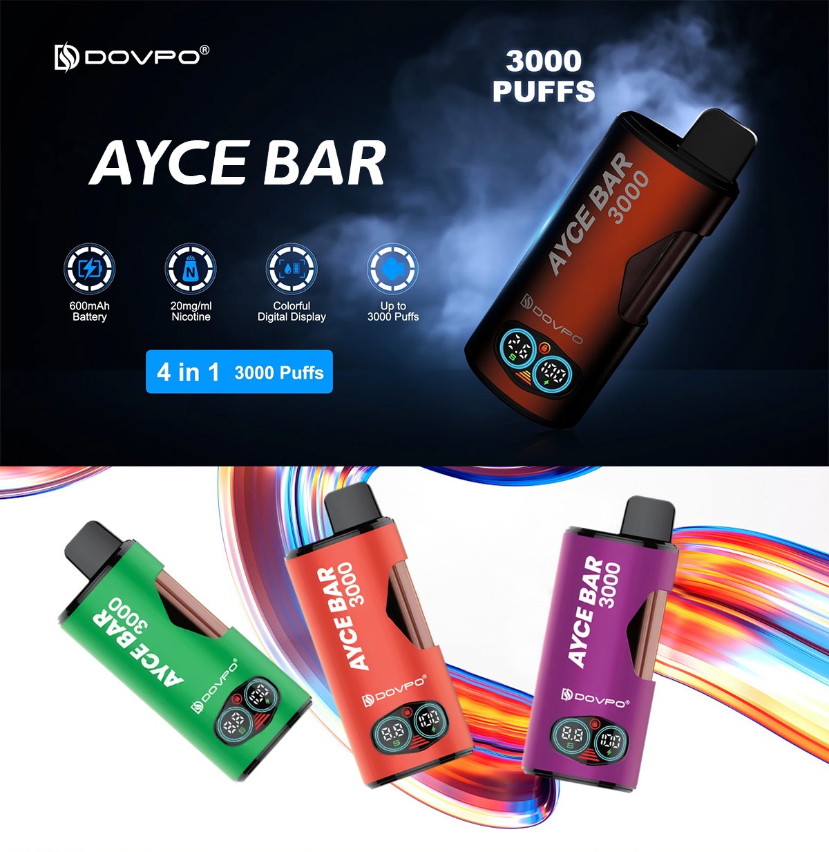 Designed to be used wherever you are, the new Dovpo Ayce Bar 3000 vape device is the perfect compact size to fit in your pocket; perfect for an on-the-go lifestyle.