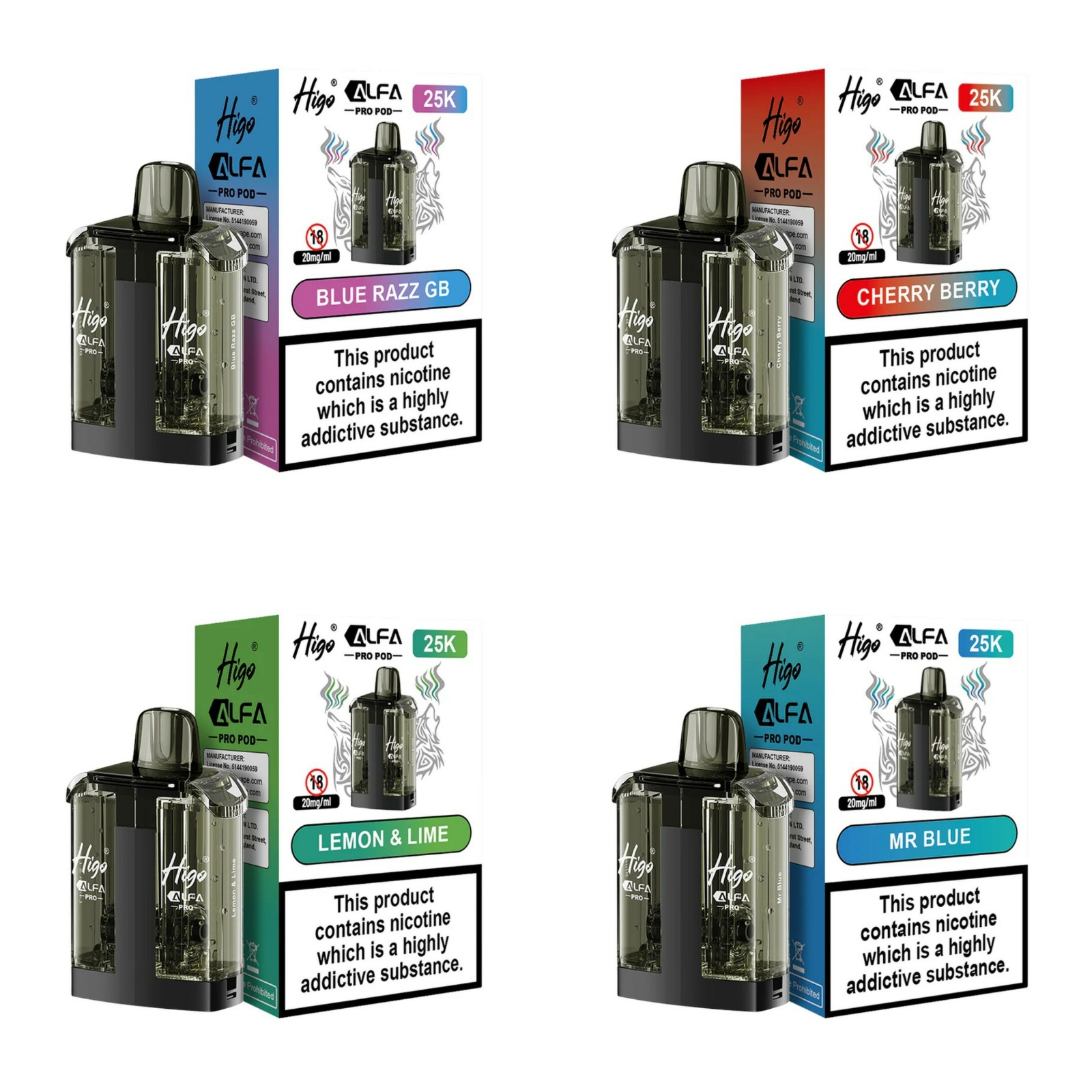 Experience bold flavour, hassle-free convenience, and long-lasting performance like never before. Specially designed for use with the Higo Alfa Pro 25K Kit, these innovative prefilled pods feature dual-flavour technology and advanced mesh coil design, delivering ultra-smooth, intensely rich puffs every time. Forget the mess of manual refills—each 2ml pod uses a smart auto-refill system that draws fresh e-liquid from the internal refill container, so you can vape longer without interruptions. Want variety? Effortlessly switch between two distinct flavours with a simple flick of a switch, giving you more freedom and flavour on the go.