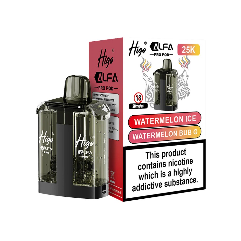 Engineered with cutting-edge technology and a leak-resistant design, the Higo Alfa Pro 25K Prefilled Vape Pod delivers a next-level vaping experience. Pre-filled with 20mg nicotine salt e-liquid, it provides a smooth throat hit and rich, mouth-watering flavours. Designed for convenience and high performance, this device offers up to thousands of puffs with its innovative 2-in-1 system—featuring two 2ml prefilled pods and two 10ml refill containers, totaling an impressive 24ml e-liquid capacity. Just open, inhale, and enjoy dense clouds and bold flavour.