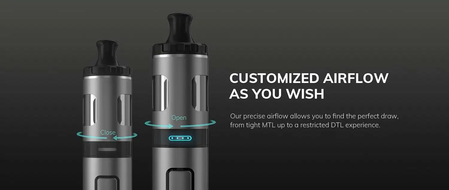 Endura APEX Airflow Control The Endura APEX tank features precise airflow adjustment, letting you customize your draw—from a tight mouth-to-lung (MTL) inhale to a more open, restricted direct-to-lung (DTL) experience.