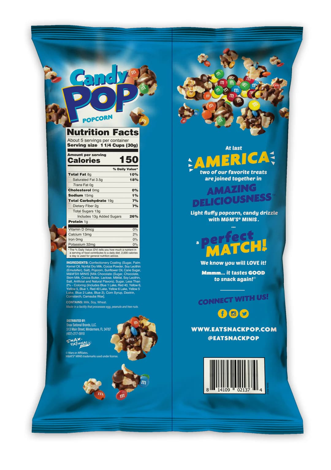 - candy pop® popcorn with m&m’s® minis candy is an incredibly satisfying combo that’s big on flavor, low in calories, and guaranteed to surprise & delight. upgrade ur movie night with this!