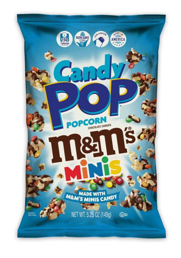 - candy pop® popcorn with m&m’s® minis candy is an incredibly satisfying combo that’s big on flavor, low in calories, and guaranteed to surprise & delight. upgrade ur movie night with this!