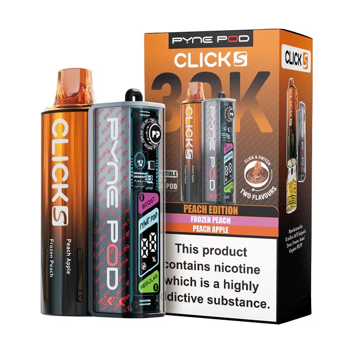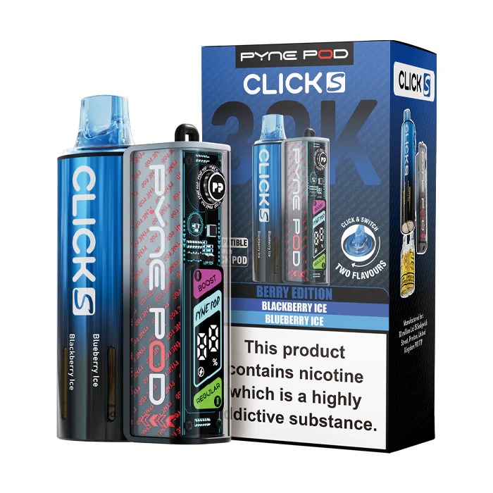 The Pyne Pod Click S 30K features dual vaping modes—Regular and Boost—allowing you to tailor your experience. Powered by a 900mAh built-in battery (larger than the 50K model), it easily lasts most users a full day and recharges in under 30 minutes via USB-C fast charging. Replaceable pods make flavour changes effortless, while the integrated OLED display provides real-time updates on battery life and e-liquid levels. Regular Mode conserves power for maximum puff count, while Boost Mode delivers more intense flavour and stronger hits. Each pod contains 20mg nicotine salt and a 2-in-1 dual-flavour system for added variety and convenience.