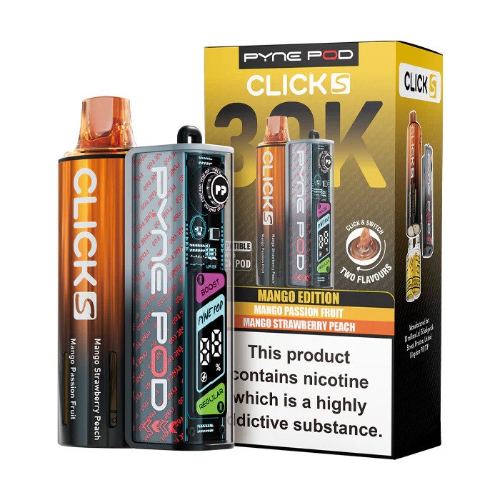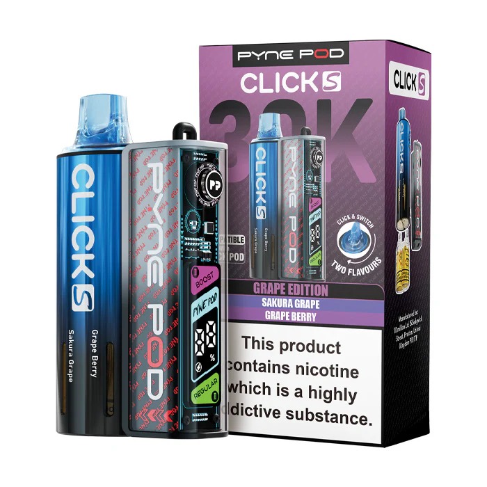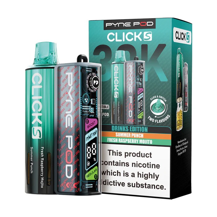 The Pyne Pod Click S 30K is a premium addition to the Click device range, engineered for smooth MTL vaping and rich, satisfying puffs. Compact and easy to use, it’s an ideal choice for those moving away from disposables in search of a more sustainable, high-puff solution. Designed for vapers who value both variety and standout performance, this kit delivers a truly game-changing experience. With no coils to replace and no messy refills to manage, it offers hassle-free operation. Its bold, ergonomic design provides a comfortable grip and pocket-friendly portability, making it as practical as it is stylish.