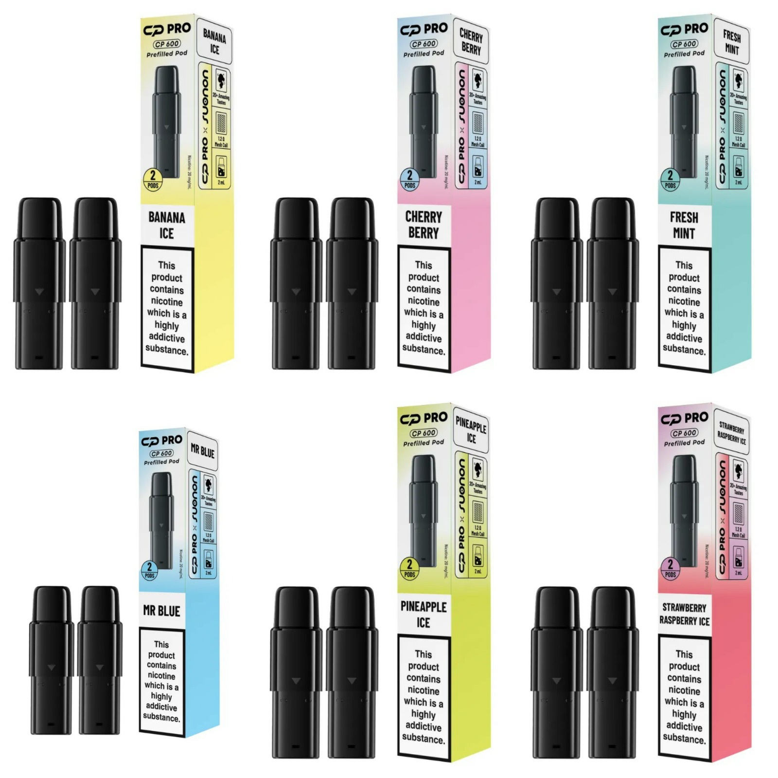 The CP Pro 600 Prefilled Pods provide an easy, dependable replacement option for CP Pro 600 users who want hassle-free use and consistent flavour every time. Available in a range of their most popular flavour blends, these pods are easy to swap out, offering a fresh and satisfying disposable-style vape every time.