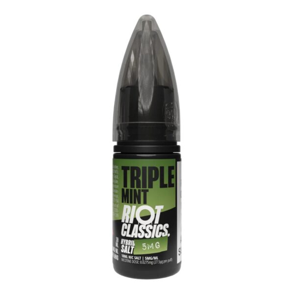 Riot Squad Triple Mint Nic Salt e-liquid features a blend of peppermint, spearmint and garden mint. This trio fusion creates a refreshing, tingling menthol verve on the taste buds. Riot Squad Salts use a hybrid of freebase and salt nicotine to deliver the quick nicotine fix but with a more noticeable throat hit.