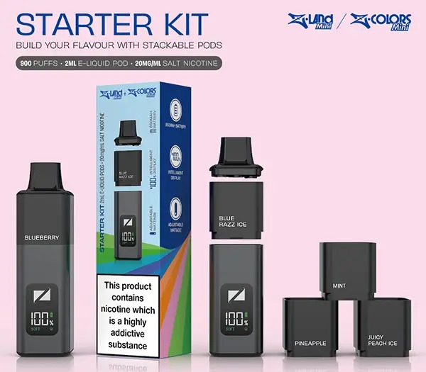 It contains 2% nicotine salt e-juice and vape. Each device is pre-filled with 20mg salt nicotine, which gives a smooth throat hit as well as a boosted mouth watering flavour. Each pod is filled with 2ml of 20mg Nic Salt E-liquid, providing delightful vaping sessions and a satisfying throat hit. This prefilled kit offers up to approximately 900 puffs, though actual puff count may vary based on draw length — longer draws may reduce the total number of puffs.